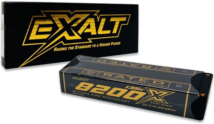 Exalt RC > Exalt X-Rated 2S 135C Stick Hardcase Lipo Battery (7.4V/8200mAh) w/5mm Bullets (EXA3207)