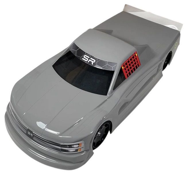 The SuperRad SR-23 SuperTRK10 oval truck body includes spoiler, decal sheet, and window masks. Designed for rubber or foam truck classes. The SR-23 differs from SR-21 with a new hood design and more rounded fender shape for more corner rotation. Made from .029” polycarbonate. TOUR approved
